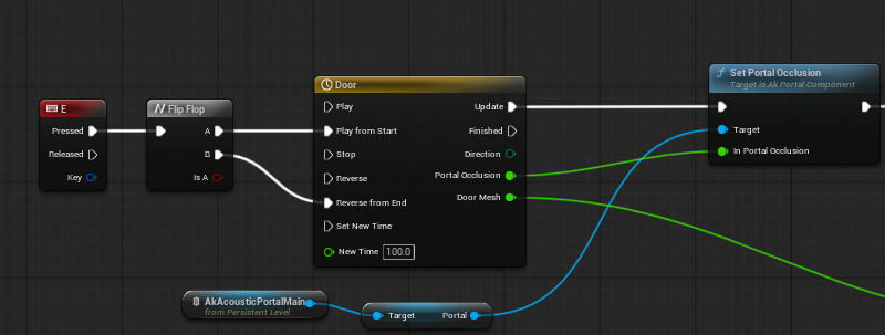 When closing/opening the door, a simple Set Portal Occlusion function is activated via a timeline track to control the diffraction/transmission of the emitter.