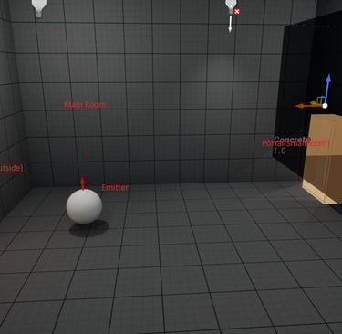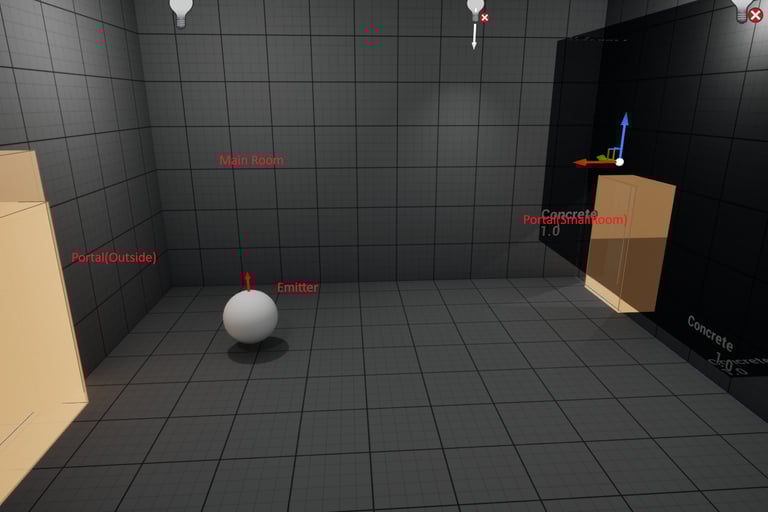 Starting in the Small Room, in triggering a beep from the player, we can hear the room has no reverb. As we get closer to the portal to the main room, we can start to hear reverb from the beep coming from the main room. Finally, once in the main room, we can hear the reverb from our triggered beep fully.